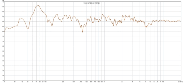 另外,在非消声室内,即使是频响曲线非常平坦的监听音箱测出来的曲线平坦度能有正负6db都非常难得了,而低频滚降,在普通家居房间不同位置测量出的结果都有天壤之别,所以不要太计较曲线起伏度。