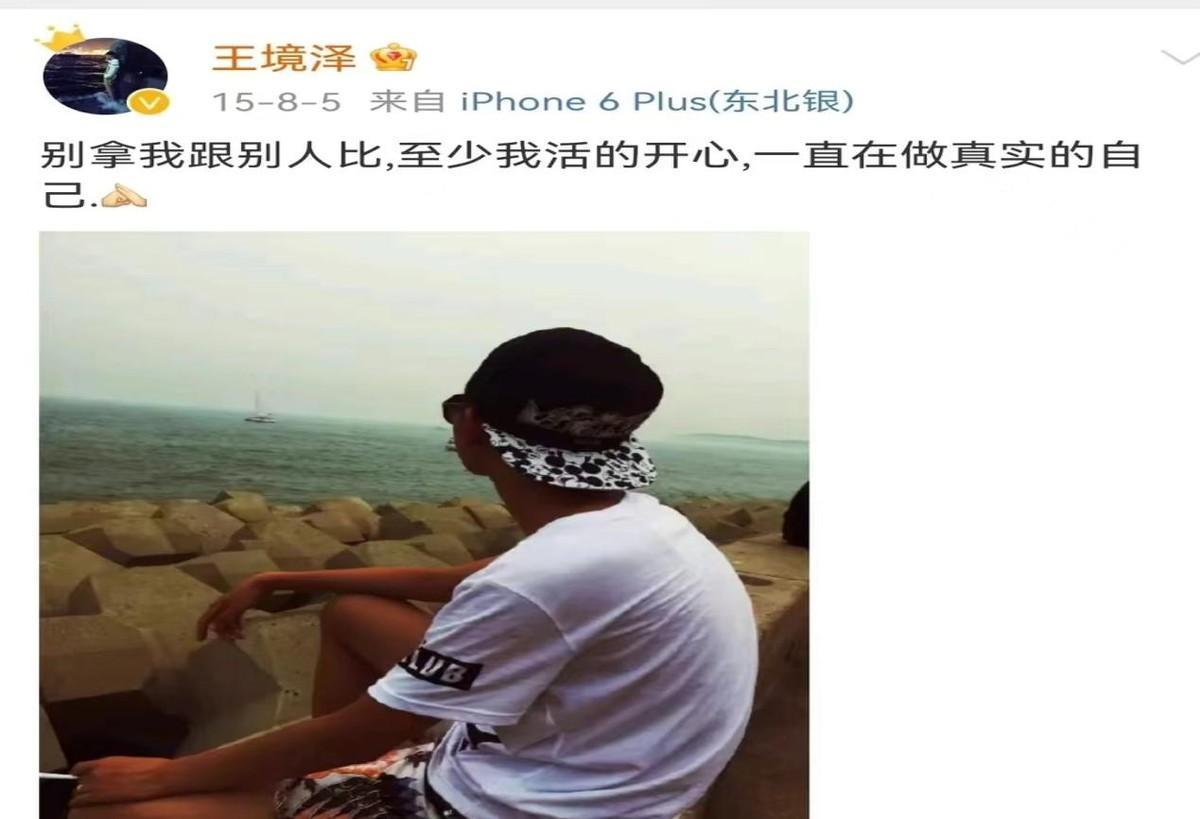 面对负面舆论,王竟泽正面发博回应,“别拿我和别人比,至少我活得开心,一直在做真实的自己”。