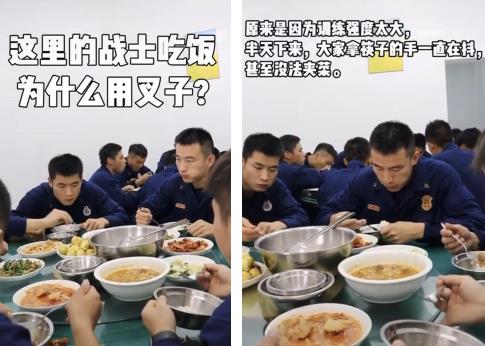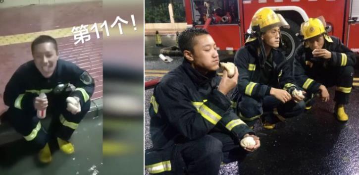 消防员们拿筷子的手一直在抖,没法夹菜