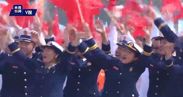 “火焰蓝”加入了群众游行的方阵中