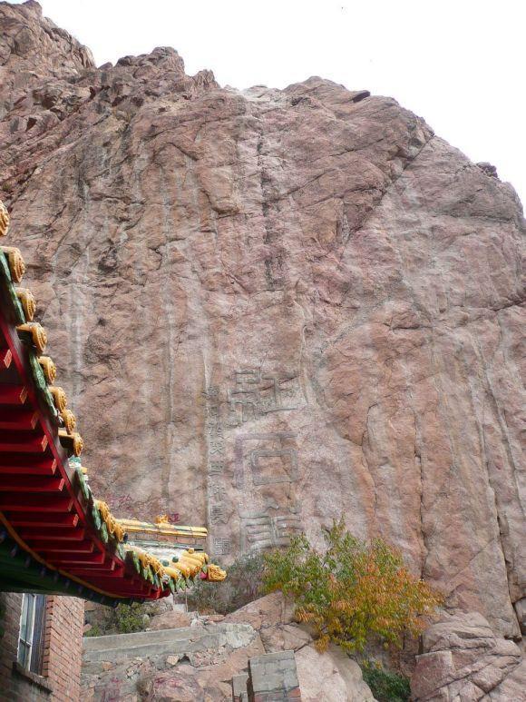 在当地还有这样一个关于红石崖善泉的传说,很久很久以前,采凉山红石崖附近有个小村庄,村中住着一户人家,全家父母儿子三口人。但火喷喷一家赶上个连年干旱,父母双双饥渴而亡,只剩下了一个十五、六岁的小伙子这一年天又大旱,村里人眼看就又要被旱死了,小伙子想起父母临死时的悲惨情景,不忍心眼睁睁再看着乡亲们一个个悲惨死去,于是挑了一双木桶便进了山谷。他走了一沟又一沟,翻了一山又一山,从早晨一直找到太阳落山,历尽艰辛,却连个露珠儿也没见到。小伙子急了,坐在谷底便哭了起来,他越哭越伤心,越哭越悲恸,星星出来了,他在哭,月亮升起来了,他还痛哭不止。哭着哭着,奔波了整整一天,连一口饭也没吃,一口水也没喝的他渐渐睡着了。小伙子睡着了,但他还掂记着找水的事情,仍在四处寻找水源。朦胧中,他来到了一块巨崖底下,只见巨崖高耸入云,红光四射,景致十分美丽。他正在观看这四周景致时,忽见从沟壑深处走出一个花季小姑娘。姑娘与他年龄相仿,身着一身金黄色衣裤,手拿一束鲜花,连蹦带跳地来到崖下,一看就知是个进山游玩、摘花扑蝶的富家闺秀。小姑娘见了他也不说话,一弯腰挪开一块大石头,露出一洼清泉,爬下身子,咕咚咕咚地喝了起来。小伙子好不眼馋,忙跑过来也想大口大口喝几口。不料,姑娘也不谦让,自己喝完就把大石头挪回了原处,把泉眼盖了起来。小伙子好不生气,一个机灵梦醒了。小伙子梦醒,已是东方发白时分,再没了睡意,便又挑起空桶,迎着渐渐发亮的东方继续往山里走去。他边走边回味昨晚的梦境,奇怪,便不知不觉地寻找起这峰红色巨崖来了。走着走着,忽然眼前一亮,平时并不注意的这峰巨崖,今日却十分鲜艳,在朝阳的辉映下,更是红光四射,灿烂耀眼,所有景致与梦中所见完全吻合。小伙子一激动,早忘了疲劳,几个健步跑到南崖下面,使尽全身力气,将大石头挪开。石头挪开,下面果然露出一洼清泉。也是小伙子渴急了,他顾不上思考,便一头扎进泉中一口气喝了个满饱。等小伙子喝好了,再看那泉眼,仅有一个瓢大,坑内也只有一瓢水。这够谁吃?小伙子失望了。但这毕竟是千辛万苦才找到的水,不能空着桶回去,一点水可能就救活乡亲们一条命。想到这儿,小伙子取过木桶慢慢舀了起来。舀一瓢,坑内还是一瓢的水;再舀一瓢,仍是一瓢的水,小伙子的两只木桶舀满了,坑内还是一瓢的水。小伙子又惊又喜,忙挑起水桶向村中跑去。乡亲们听说小伙子找到了神泉,纷纷进山挑水,但不论有多少人,挑多少水,坑内永远是那么清澈甘洌,清凉可口的一瓢水,百姓再也不为没水吃犯愁了。消息越传越远。这年,刘邦十万大军被困小白登。刘邦听说红石崖南崖下有个神泉,便责成千军万马昼夜不停地轮班舀了七天七夜,但坑内始终是一瓢水,既不多,也不少。有一天,小伙子又梦见了这位小姑娘,说:我是天上的龙女小金龙,由于同情你,帮你找水源,犯了天条被打下凡间为你们做好事赎罪来了,同我一起被打下来的还有我两个哥哥,他们也来为你们做好事来了,你们从此再不必为水发愁了。小伙子一梦惊醒,更觉得奇怪,遂直奔山崖下看有什么变化,结果发现不知什么时候红石崖下又多了两股泉水。两股泉水顺沟流下,汇成溪流,一直流出大山,流到村庄,村里人再也不用去山里挑水了。后来,人们为了感激和纪念小金龙,便在南崖下建了一座庙。从此以后,只要遇到旱年,山周围的人们就要上山祈雨,龙王庙有求必应,十分灵验。再后来,人们发现,小金龙那眼泉水还能治病,不论病情有多重,只要向小金龙祈祷,喝一口泉水,病人就会神志顿醒,所有疾病就痊愈了。为此,人们又为这眼泉起名为善泉。