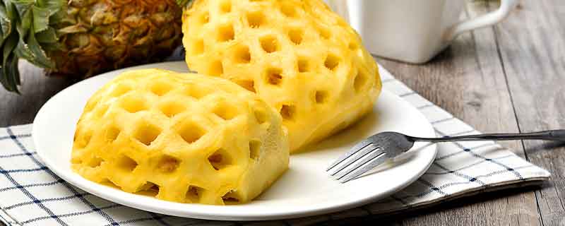 3、口感:新鲜完好的菠萝口感脆爽,汁水香甜,而坏掉的菠萝味道发苦、发涩、口感软烂难吃。