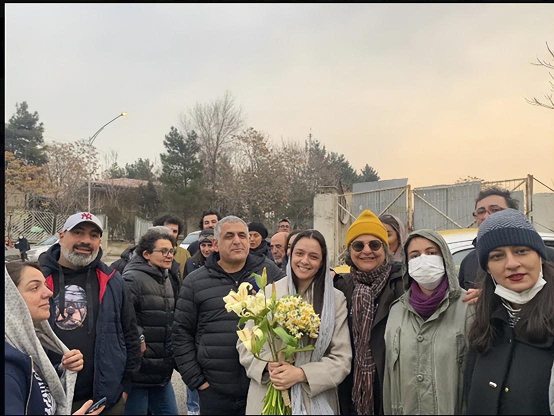 周三从德黑兰臭名昭著的埃文监狱获释后,阿里杜斯蒂在朋友的簇拥下,手持一束鲜花合影留念。有关她的案件的更多细节尚未公布。
