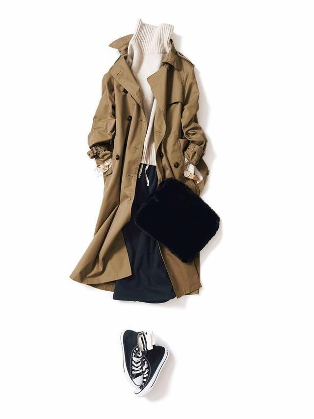 针织衫和风衣更是万年的cp组合。柔软的针织最能体现出女性的温柔,想要突出气质可以选择小高领,或者搭配一件基础款针织衫就可以轻松穿出高级感。