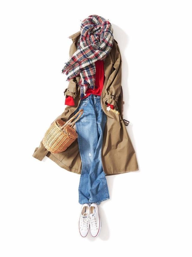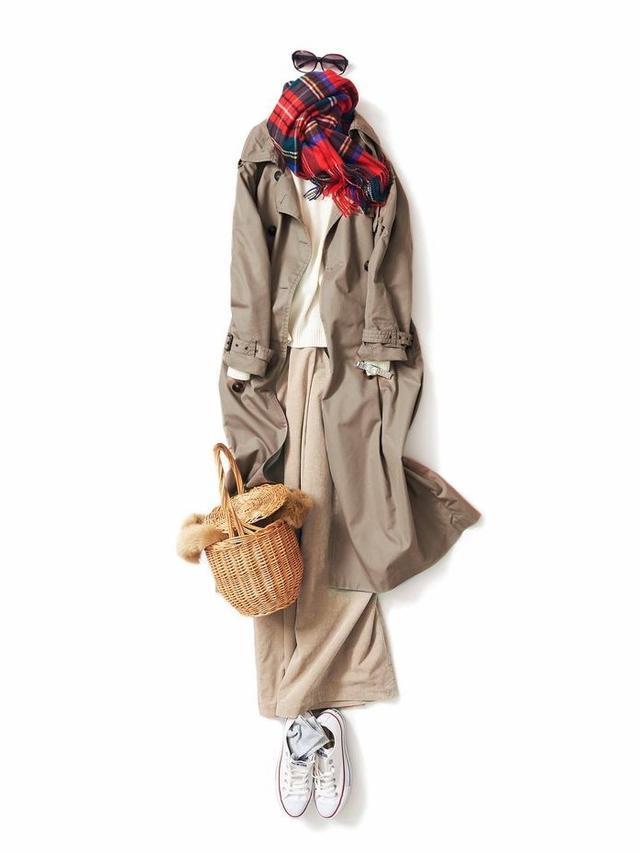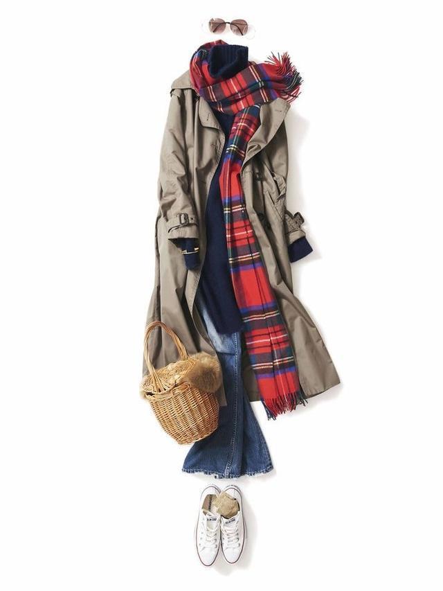 内搭采用同色系搭配(顺色搭配)的穿法,能在视觉上形成竖向延伸,给人又高又瘦的感觉,即时髦又显瘦。一条围巾可以保暖也可以用来凹造型,围巾与风衣同色系或者与内搭撞色系搭配,可以为整套look加分哦。