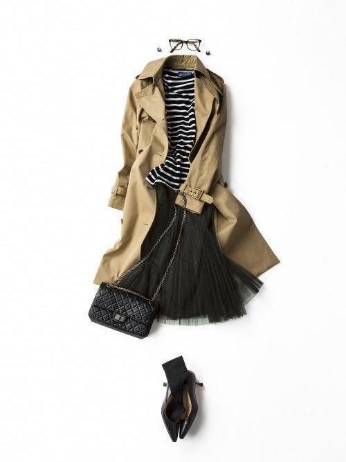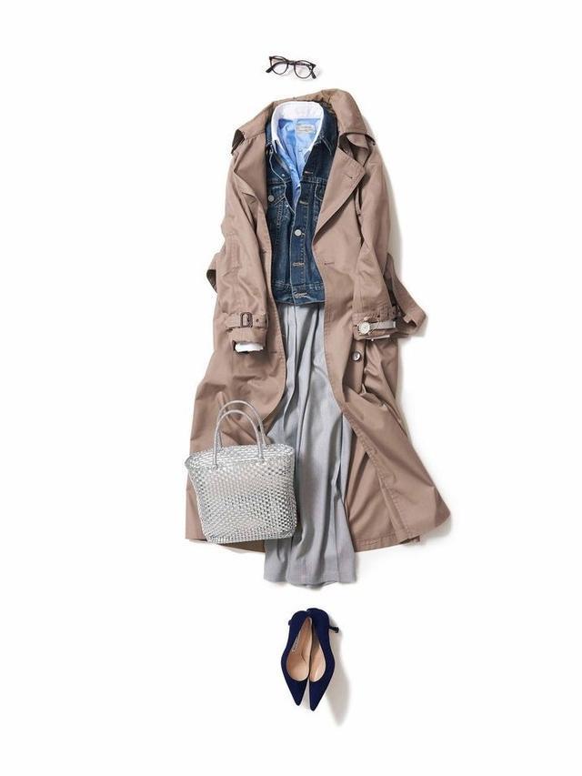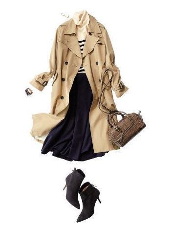 与裙子搭配时候,一定要控制好整体的长度比例,没有身高优势的人,风衣和裙子的长度不能相等。一长一短有层次感,不显矮。矮个子女生理想比例是内短外长,内搭膝盖以上的短裙会为让你的身材比例更加完美。