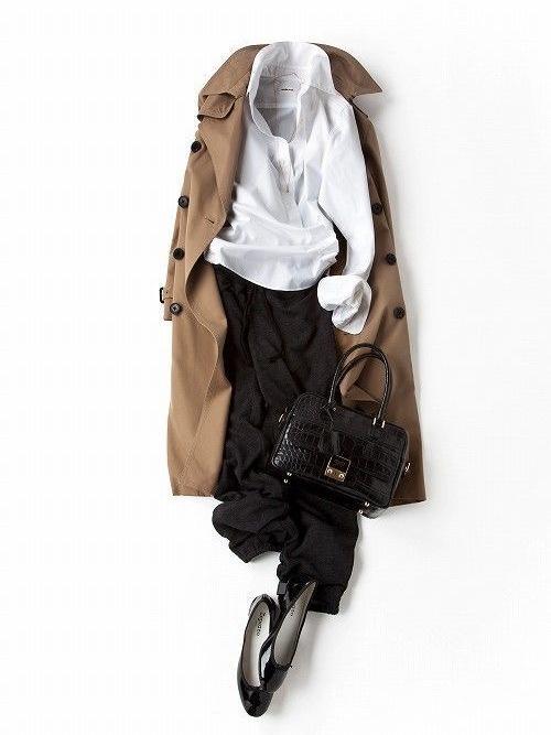 衬衫的简洁和干练最适合与帅气的风衣搭配,卡其色和白色叠加可以中和卡其色的老气,白衬衫最好可以有些设计感。