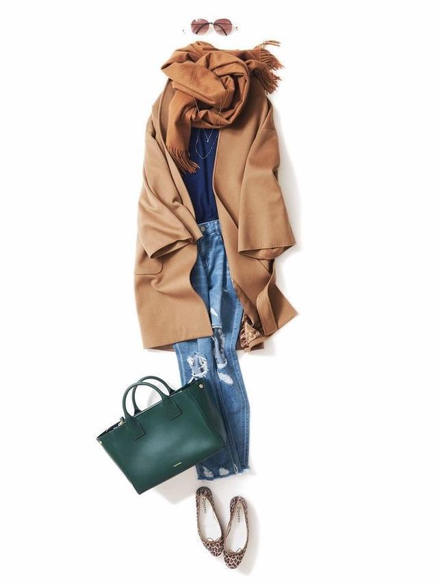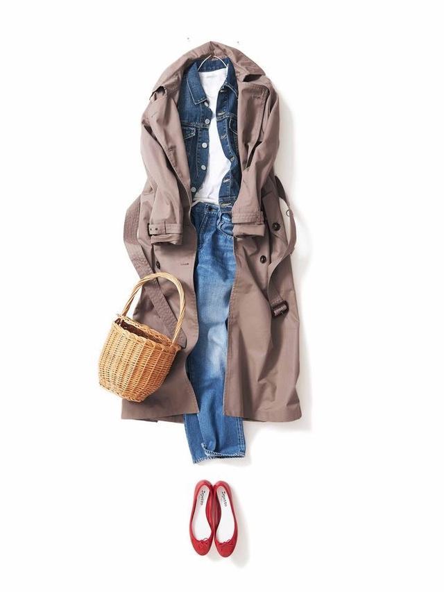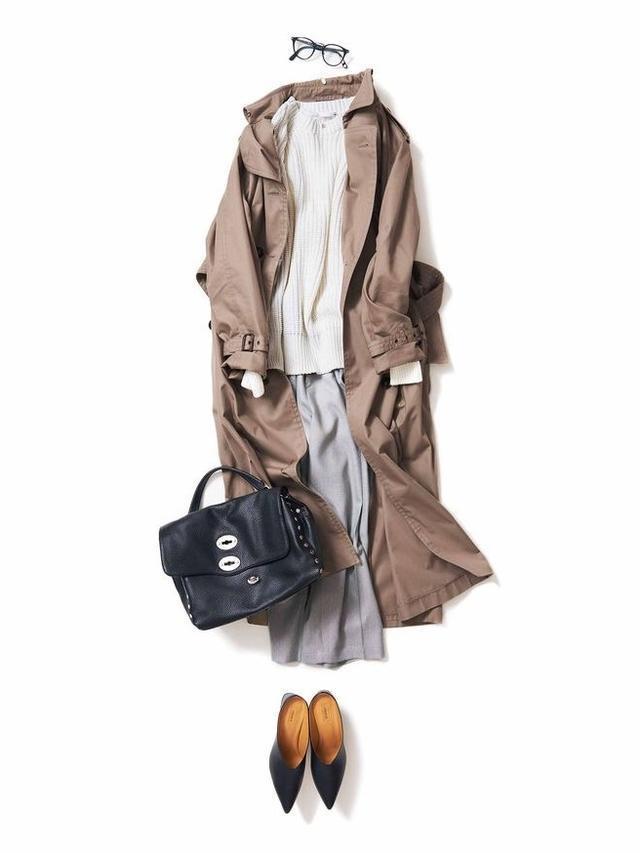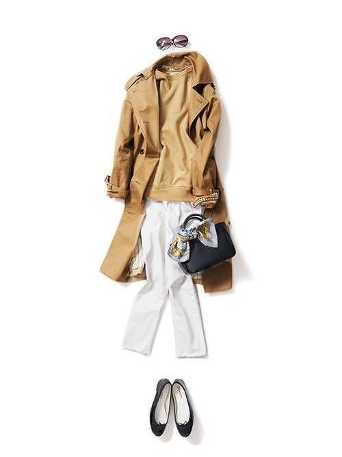 棕色、焦糖色都属于大地色系,更接近亚洲女性的肤色,内搭一件针织衫打底,再搭配一双平底鞋,更易于展现风衣的自由感,搭配短一截阔腿裤或将长裤卷一截露出脚踝可以显高和瘦。