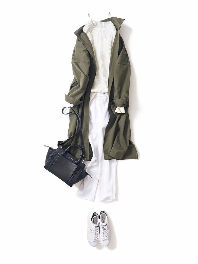 尝试过百搭的大地色系风衣,不如试试今年流行的军绿色系,让你看起来更硬朗有型。搭配法则同样适用。