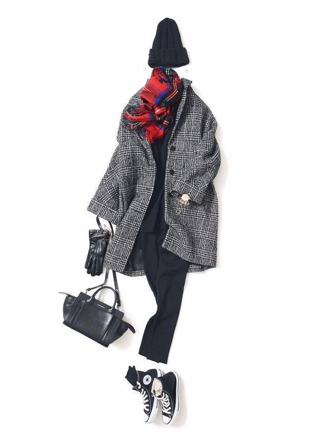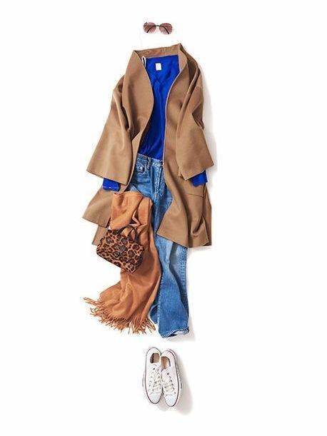 或者一整套look都是同色系穿搭,利用不同饱和度的单品打造出城次感,简单又大方,最后用一条颜色鲜艳的围巾作为点缀,打破同色系搭配的单调与沉闷。