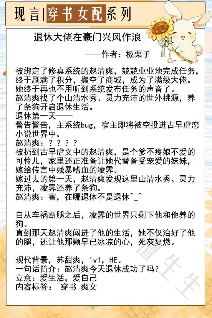 喜欢的亲们点一波收藏,以便书荒慢慢看~听说关注我每天有不同的精彩小说推送,保证让亲们看得热血沸腾,欲罢不能,约吧亲!如果亲有喜欢的小说,也种草给我,让我们一起愉快地阅读吧!另:图片素材来源于网络,侵删致歉。