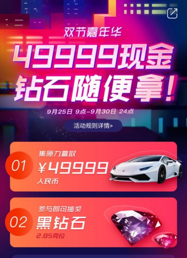 今日,网易星球开启了“双节嘉年华”活动,办一场盛大的赛事,为庆祝中秋国庆双节,网易准备了49999现金、iphoneX、万元钻石等丰富大奖,只等你来拿!