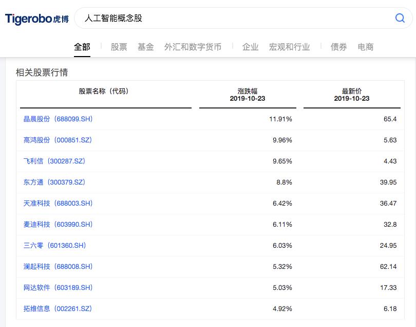 人工智能概念股也相继出现: