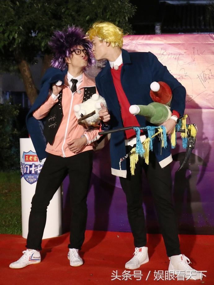 不过面对僧多粥少的状态,最豁得出去的,应该就是孙杨和韩东君了,你俩这一头亮眼的假发,外加作势要亲亲的造型,不把女嘉宾吓坏才怪。
