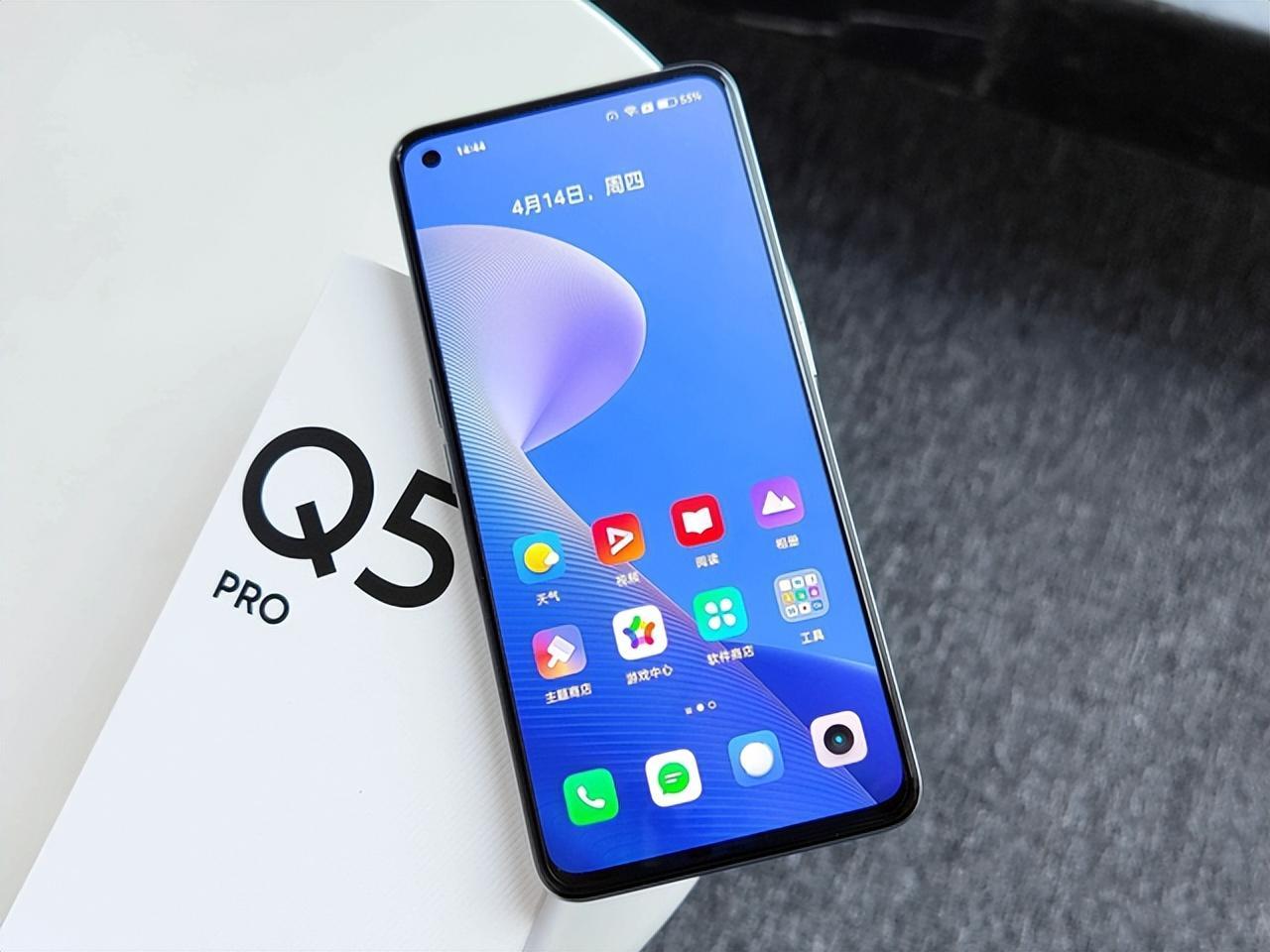 realme Q5 Pro 正面采用一块120Hz 三星 E4 AMOLED屏,具备高亮度、低功耗的特性,屏幕色彩达到100% P3色域标准,性能方面搭载骁龙870处理器,还有5000mAh大容量电池+80W闪充的强续航组合,更具旗舰感。