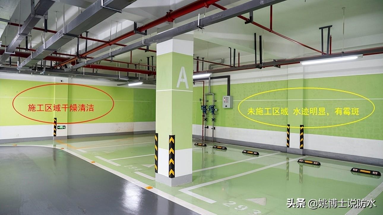 南宁建工城地下室、车库防结露项目,采用TW-30定制版淡绿色、灰色、白色材料施工。