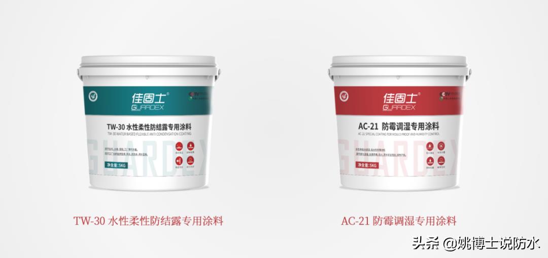针对梅雨季常见潮湿、结露、发霉难题,源自清华大学的佳固士推出了TW-30 水性柔性防结露专用涂料和AC-21 防霉调湿专用涂料,一喷一刷,轻松便捷,快速构筑隔热防结露层和调湿防霉层,彻底解决潮湿、结露、发霉的通病。
