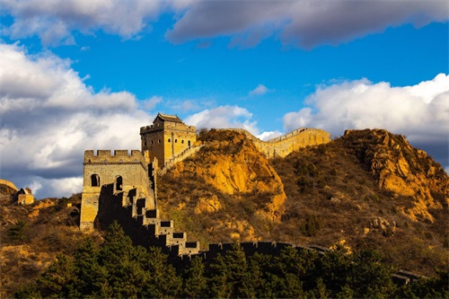 金山岭长城:位于承德市滦平县与北京市密云县交界处,距离北京市区约130公里,是由明代抗倭名将戚继光亲自主持修建的一段长城。这段长城依附重重山峦而建,逶迤曲折,登上长城,视野非常开阔壮观,是明代长城中景色最为秀美雄壮的一段。而且现在金山岭长城未经重建,与北京其他地方的长城相比依然较好的保持了原貌,具有古朴纯粹的感觉。