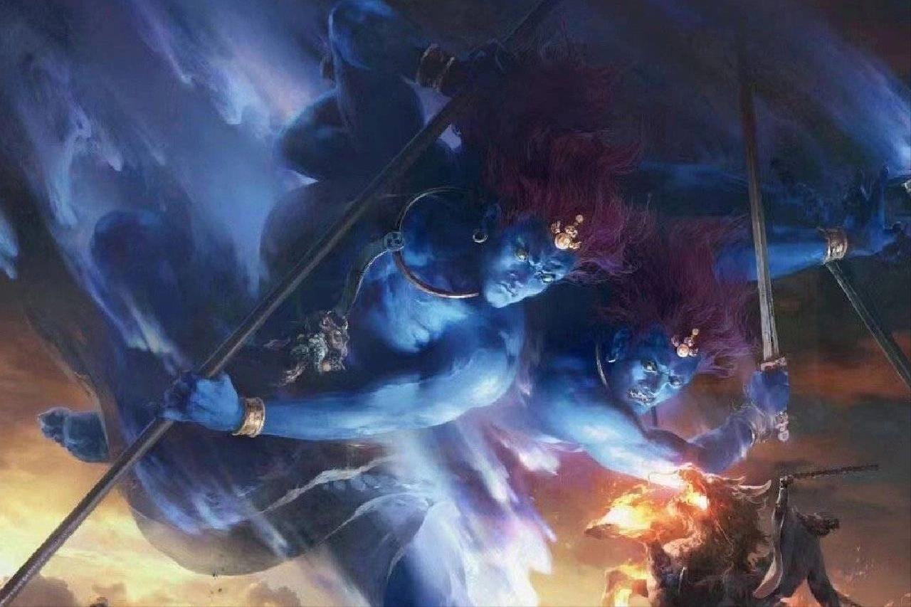 而这边殷郊学艺出师后,也奉命下山协助武王伐纣。临走时,食用了几粒仙豆,便有了三头六臂神能,面如蓝靛,发似朱砂,多生一目。师父广成子又送番天印、落魂钟、雌雄剑等多件法宝护身。还曾对广成子亲口发下毒誓,若来日助纣为虐,自愿受犁耕而死。可是好巧不巧殷郊下山途中申公豹又半路截胡,以其弟殷洪被姜子牙等人所杀为由,成功策反了殷郊。