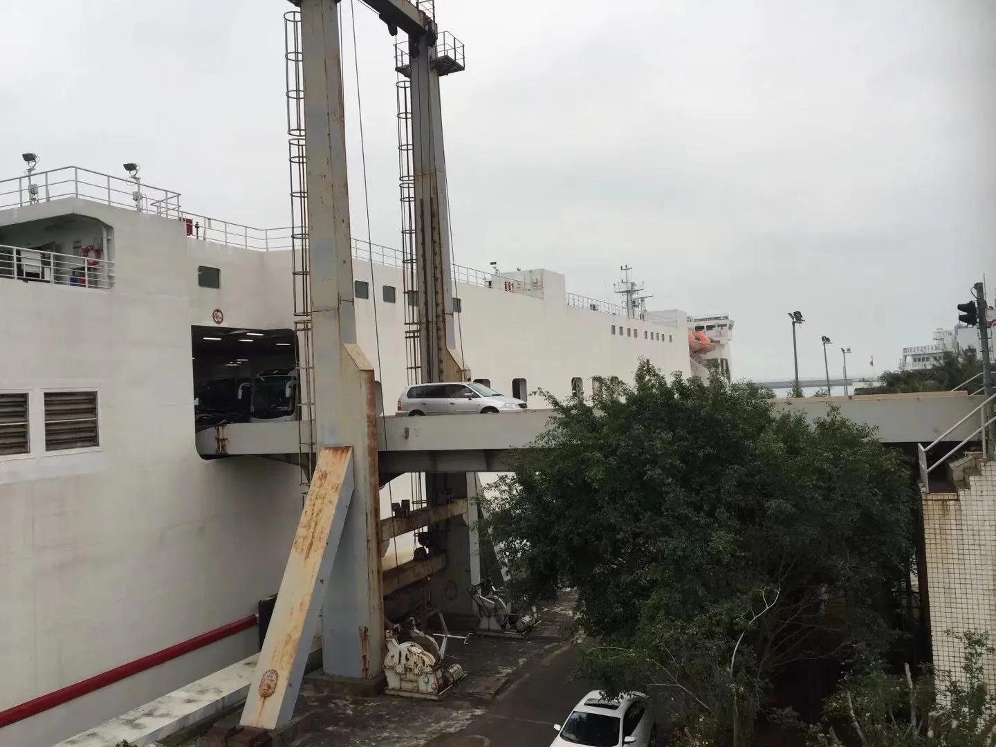 约莫50分钟左右,我们渡过了琼州海峡,到达了海南的海口南港。轮渡上分别有火车栈桥、汽车栈桥和人行栈桥。