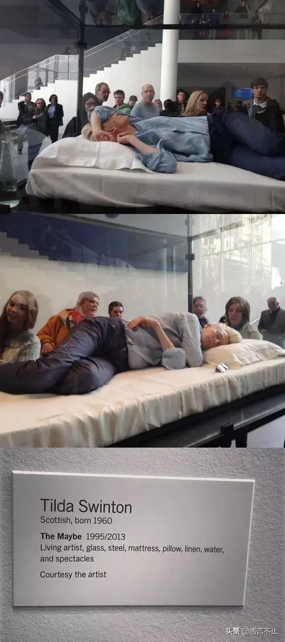蒂尔达前来的时间和地点都是随意的,就连博物馆工作人员都不会提前得到通知,往往在工作的间隙一扭头才发现“嗬,人已经躺进来了”。