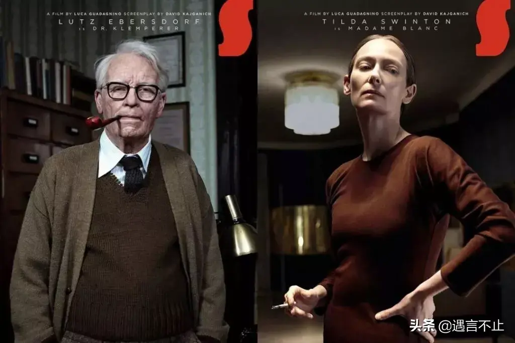 ▲别怀疑,蒂尔达在这部恐怖片里一人分饰两角,左边的老头和右边的高傲舞蹈老师都是她……