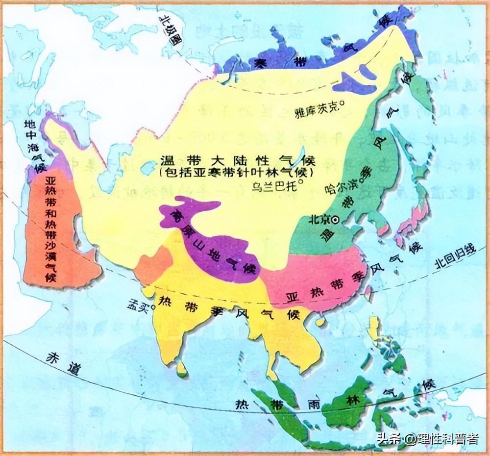 第五,季风与大陆面积大小有关,大陆面积大,海洋与陆地之间的温差越大,季节性高、低压就越强,气压梯度变化越大,季风也就越明显。我国的陆地面积较大,季风气候比较明显。