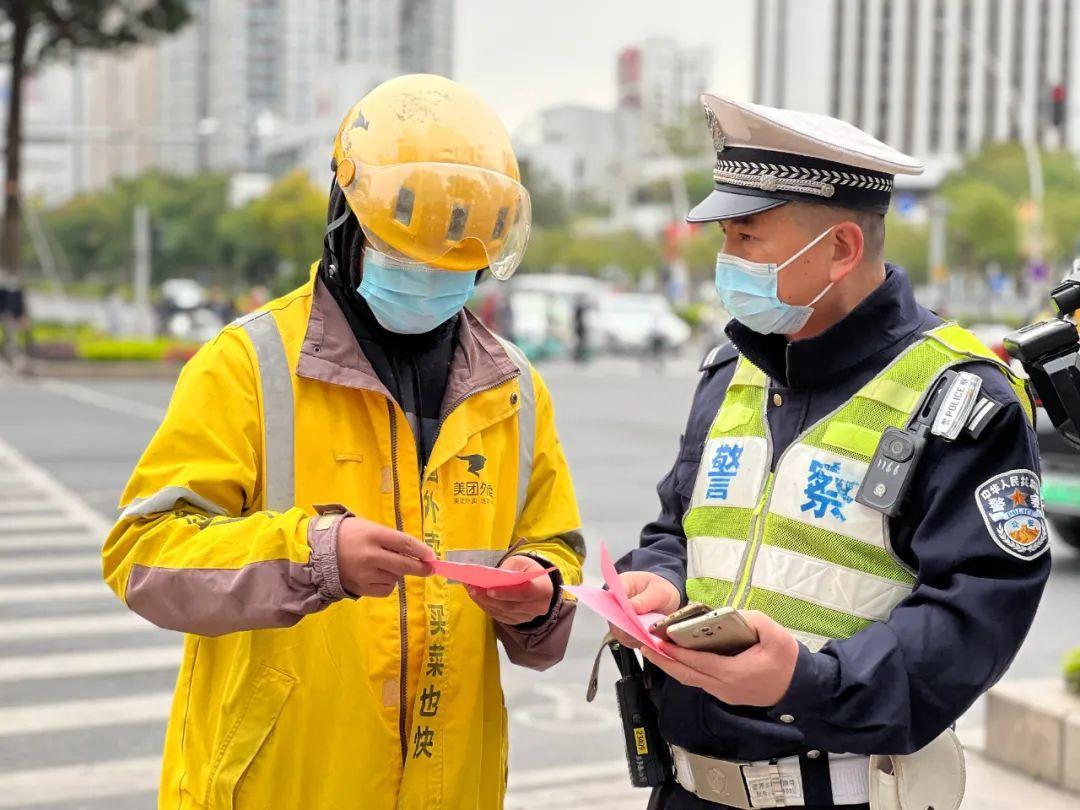 交警部门坚持宣传教育与执法劝导相结合,在严格查纠各类道路交通违法行为的同时加大交通安全宣传教育力度,通过“举牌劝导”、发放宣传资料等形式,多维度、全方位地开展交通安全宣传教育工作,警示交通违法者,提高群众交通安全意识,营造浓厚的宣传氛围,规范道路交通秩序,保障群众出行安全。