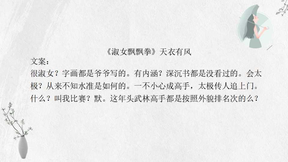 3、《淑女飘飘拳》天衣有风 10万字 BG 完结