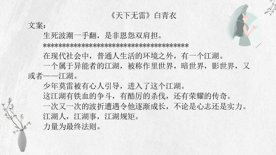 7、《天下无雷》白青衣 73万字 坑