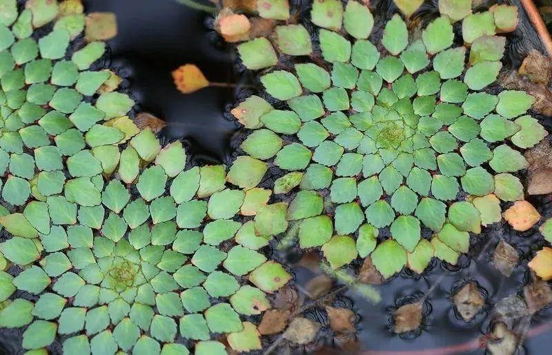 菱是江南水乡的常见植物,它的叶片呈菱形,在众多水生植物中格外醒目。别看莲座状的菱盘终日漂浮在水面,但它并非是像浮萍之类的漂浮植物。摘过菱角的朋友一定知道,菱的根是扎在水底淤泥里的,中间连着细长柔软的茎。那么,菱是如何实现水上漂的呢?翻看菱盘就能看到答案。菱的浮水叶叶柄中部膨大变成了气囊,这些气囊为菱提供了浮力。而菱叶呈螺旋状排列的方式,又暗合斐波那契数列,保证了叶片互不遮挡铺满水面,从而最有效地进行光合作用。古人用的菱花镜,便是从菱叶的镶嵌图样引申而来的。