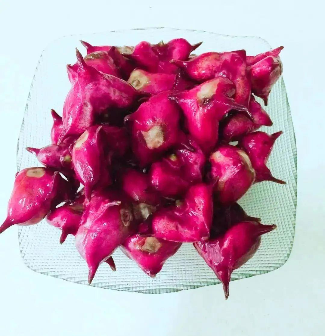 最早上市的水红菱通常是生吃的,口感松脆清甜|小花