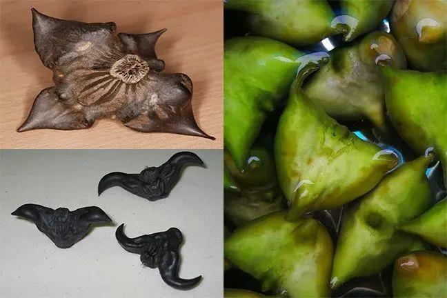 形态各异的菱角|Gdsaverio & Yuksing / wikimedia;江南蝶衣