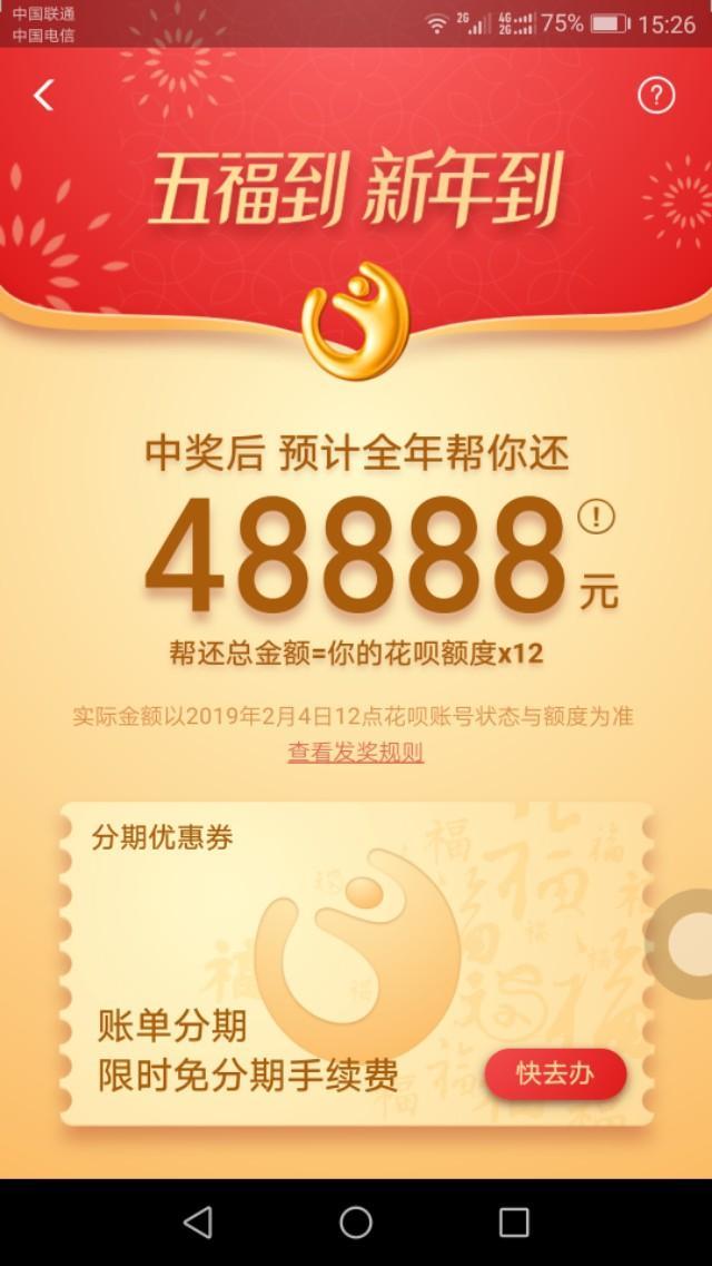 看清楚了,万一中奖的话,最大是你花呗总额度的12倍。