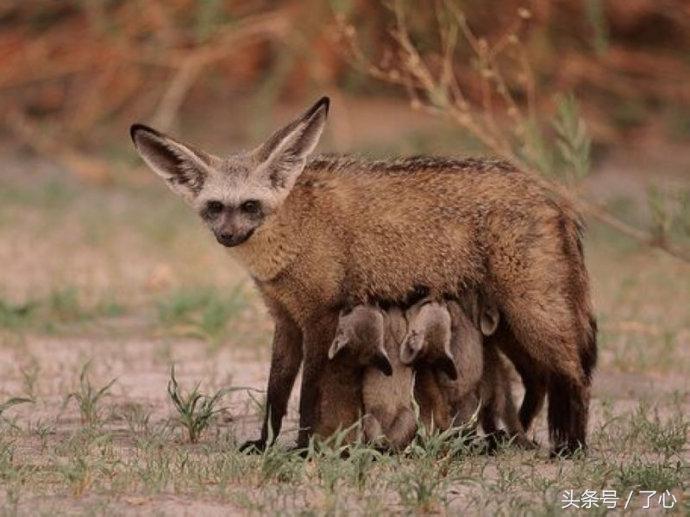 大耳狐(见上图),别名蝠耳狐、好望角狐,为犬科大耳狐属的单一物种。大耳狐属在犬科分类上争议不断,有的认为大耳狐与狐属的亲缘关系较近,常列为狐亚科单独一属,而很多学者认为大耳狐牙齿与其他犬科动物不同,牙齿较小,与犬科其他成员的亲缘关系都较远,大耳狐应该单独成大耳狐亚科。