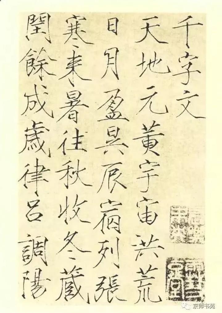 有基础的就可以直接临帖练习了,新手入门推荐宋徽宗赵佶的《真书千字文》,字体规范严谨,涉及字数较多,是非常好的练习范本。