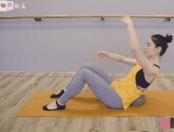 首先,坐姿瑜伽垫子上,双脚打开与肩膀同宽,然后再将弹力球或者抱枕放至尾椎处,深呼吸,用腹部的力量将身体往上抬,双手在胸前抱圆保持平衡。