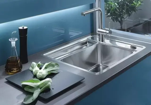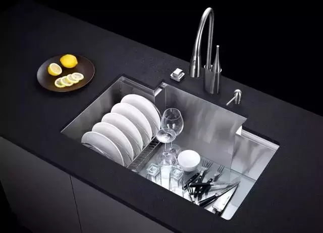 1、水槽与橱柜台面高度齐平,相对打扫比较简单