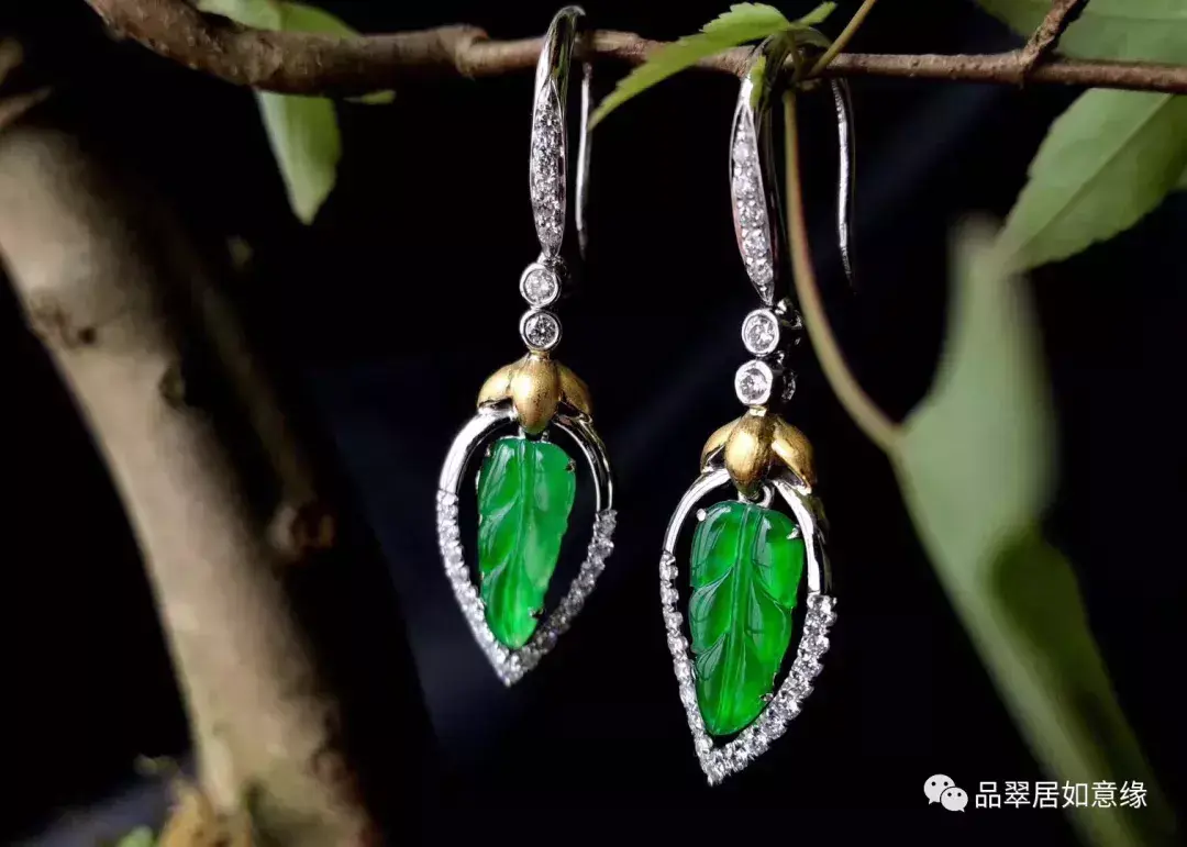 (品翠居•如意缘 翡翠绿叶耳坠)