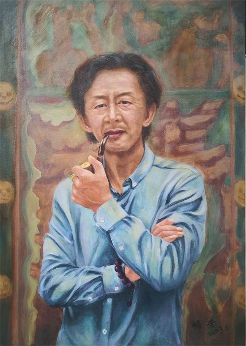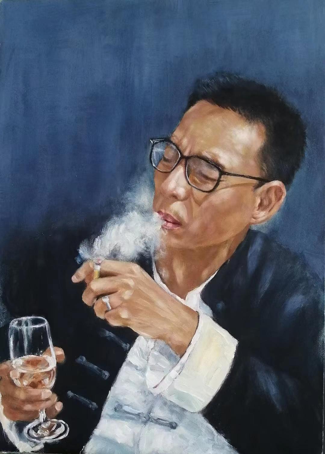 杨老师认为人物肖像绘画创作的目的,主要是实现它的审美价值,要满足人们心灵的渴求和精神上的需要。肖像画家要以敏锐的观察力 抓住人物的表情特征,并以高超的表现手段精确刻画出人物的内心风景、灵魂优美、人性深度和性格特征。肖像画创作不是简单地再现人物外型,还需要透过人物的外貌形象特征,体现出人物的精神世界。通过各种人物的造型、动作、表情特征、服装打扮以及其所体现出的思想情绪,赋予人物以明显的特点与典型的个性,在作品中既能显示画家本身的创作技能及审美趣味,又能够尽量完美的还原人物对象的“精气神”,这样的作品才能够让人赏心悦目、回味无穷。