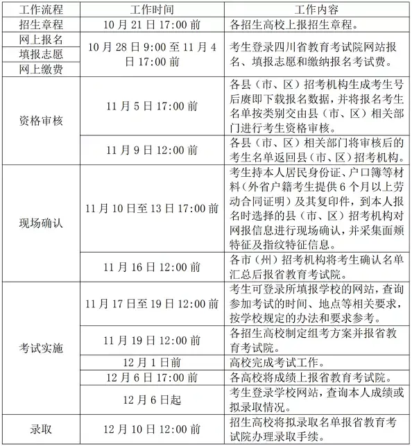附:四川省2021年高职扩招专项工作招生考试及录取时间安排表