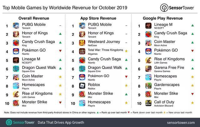 《王者荣耀》作为国内的一款现象级别的手游,不仅火遍全国,而且在全球范围内《王者荣耀海外版》也是大火。但是,最近统计机构SensorTower公开了2019年10月全球手游收入榜单,《王者荣耀》依然在榜单前列,但只能排到第二。