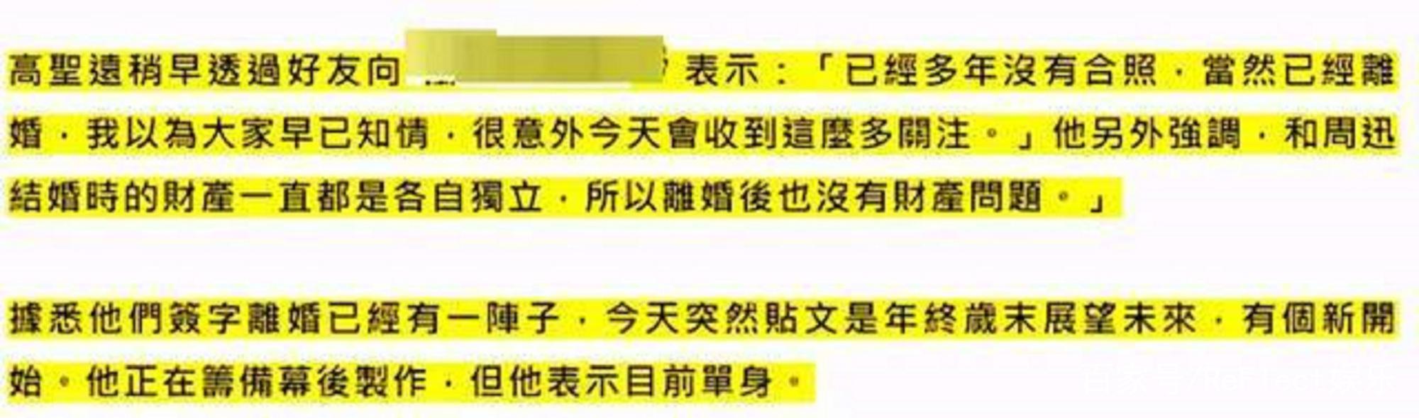 当高圣远被问“为什么选择在这个时间点证实离婚”,高圣远说:“本来私事就不想多说,加上彼此一直各自在忙,没有好的时间点说明,原本打算过年时正式宣布”。