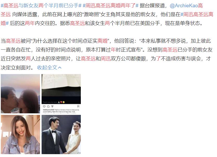 没想到高圣远已分手的前女友近日突然发两人过去的亲密照片,让高圣远和周迅双方公司都傻眼,为了不造成伤害与误会,才决定立刻面对。