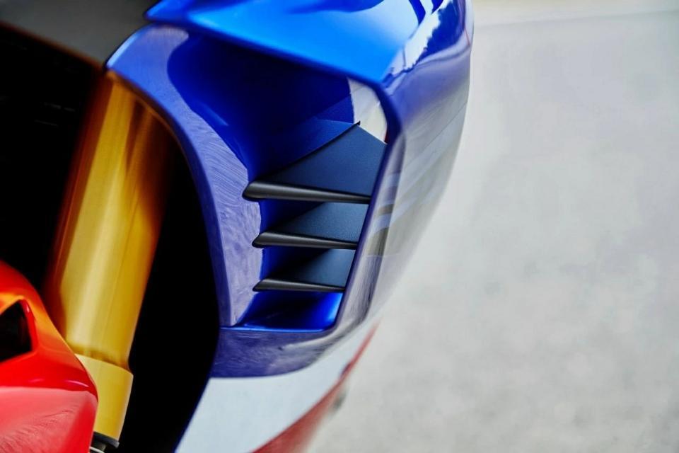 2020款CBR1000RR-R的外观更加凶悍,更符合空气动力学,新增的车头进气通道和车身两侧可调节角度的风道,更低俯的油箱和更流线的车尾,都是新款相比老款的升级之处,坐姿也更加激进战斗。