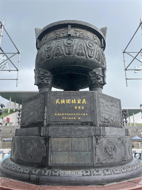 内蒙古博物馆作为1957年自治区成立10周年大庆的重点项目,是全区唯一的自治区级综合性博物馆,也是全国少数民族地区最早建立的博物馆之一,早在上世纪50年代就被列入世界建筑史。2008年,内蒙古博物馆改称内蒙古博物院。内蒙古博物院主体建筑面积64000平方米,展览面积15000平方米,为国家一级博物馆。内蒙古博物院的三大镇馆之宝分别是战国鹰顶金冠、元代钧窑“小宋自造”香炉和查干诺尔龙1。其中,查干诺尔龙是白垩纪时期内蒙古地区发现的最大的恐龙,出土于1970年,是迄今为止中国发现的器型最大、最完整、制作最精湛的钧窑香炉。这三件文物都是非常值得一看的,展现了别具一格的多民族融合文化。