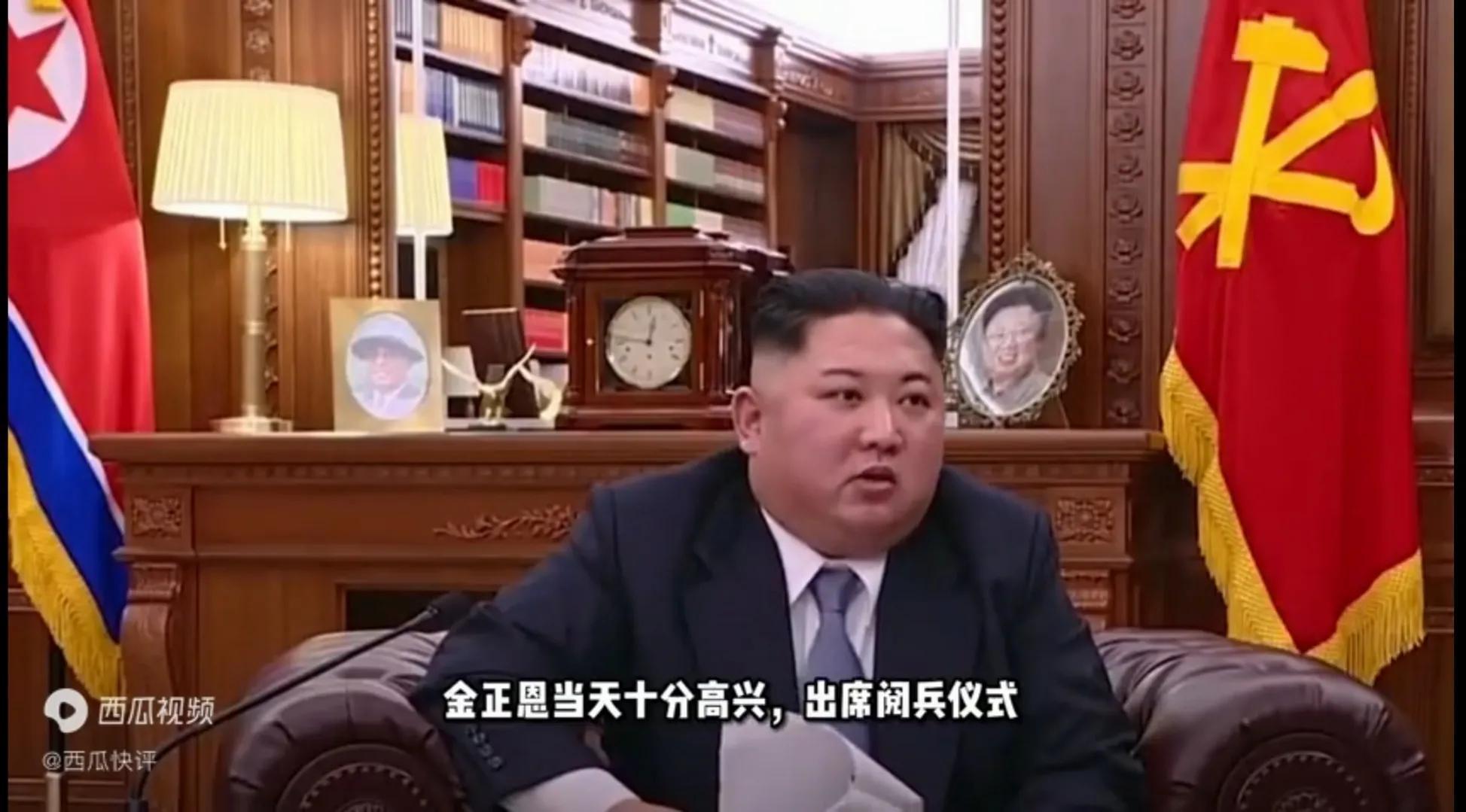 朝鲜最高领导人金正恩出席当天的阅兵仪式,十分的高兴。