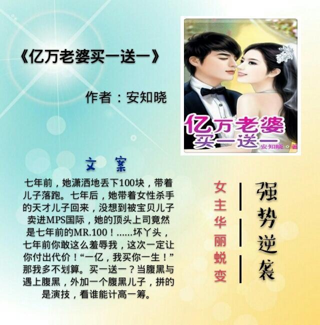 1,书名:《亿万老婆买一送一》 作者:安知晓
