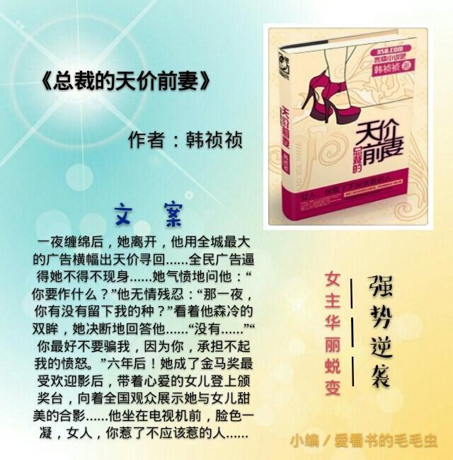 3,书名:《总裁的天价前妻》 作者:韩祯祯