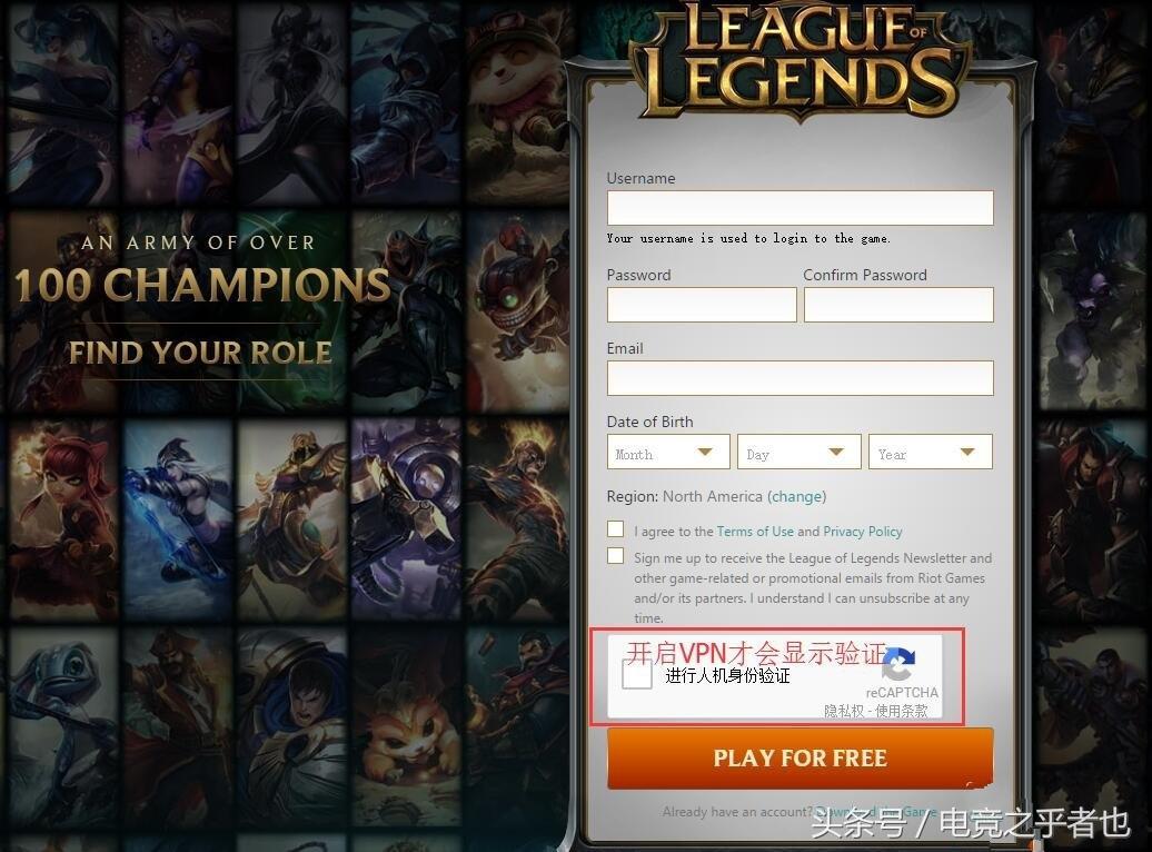 注意:注册LOL美服帐号必须开启VPN,否则没有验证码。